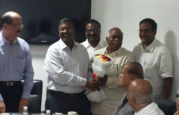 Sri Dhilip Kumar, President, AIDCOC congratulating Sri Venkat Jasti, President, IPCA during IPCA meeting held on 6-9-14 at Hyderabad.